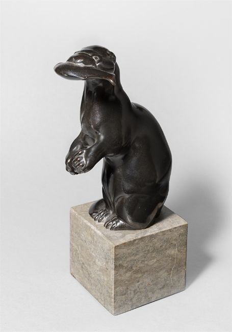 Bronze mit schwarzer Patina, auf Marmorsockel montiert. 19,2 × 8 × 11,5 cm (7 ½ × 3 ⅛ × 4 ½ in.). Hinten auf dem Schwanz signiert: A.Gaul. Auf dem Rücken der Gießerstempel: NOACK BERLIN.