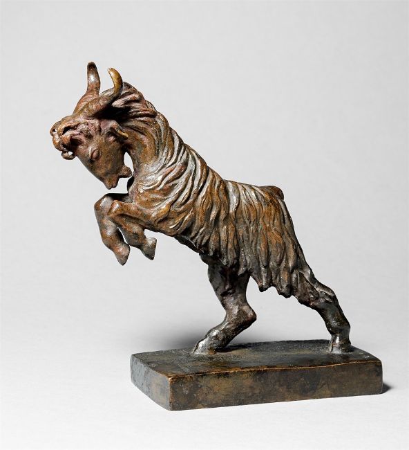 Bronze mit brauner Patina. 15,4 × 14 × 5 cm (6 ⅛ × 5 ½ × 2 in.). Auf der Plinthenoberseite in der rechten Ecke monogrammiert: RS. Auf der rechten Schmalseite der Plinthe der Gießerstempel: H.NOACK BERLIN FRIEDENAU.