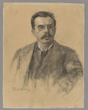 Kohle, partiell mit Pinsel in Weiß gehöht, auf bräunlichem Papier. 40,4 × 30,9 cm (15 ⅞ × 12 ⅛ in.). Unten links mit Bleistift signiert: MLiebermann. Unten rechts von Wolfgang Gurlitt, dem Sohn des Dargestellten beschriftet: Bildnis Fritz Gurlitt, um 1892.