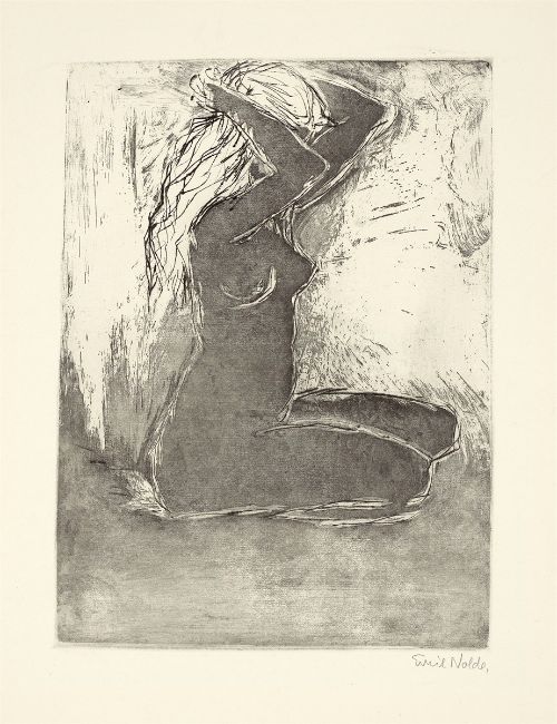 Kaltnadel und Aquatinta auf Zanders-Velin. 30 × 22,2 cm (65,3 × 49,8 cm) (11 ¾ × 8 ¾ in. (25 ¾ × 19 ⅝ in.)). Signiert und betitelt. Rückseitig mit dem ovalen Stempel des Sammlers Helmut Goedeckemeyer, Frankfurt a. M.: Goe [nicht bei Lugt].