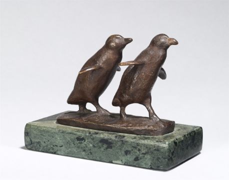 Bronze mit dunkelbrauner Patina, auf Granitsockel montiert. 8,8 × 7 × 6,2 cm (3 ½ × 2 ¾ × 2 ½ in.). Unten links auf der Plinthe signiert: A. GAUL.