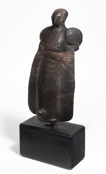 Zustandsbericht: Schöner harmonischer Gesamteindruck. Keine Substanzverluste. Die Skulptur steckt locker im Holzsockel. Der Holzsockel stellenweise mit Kratzspuren.
