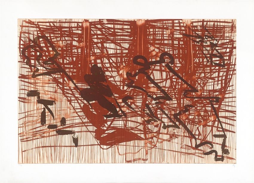 Farbaquatinta und Kaltnadel auf Velin. 79 × 119 cm (101 × 139,5 cm) (31 ⅛ × 46 ⅞ in. (39 ¾ × 54 ⅞ in.)). Monogrammiert und datiert.