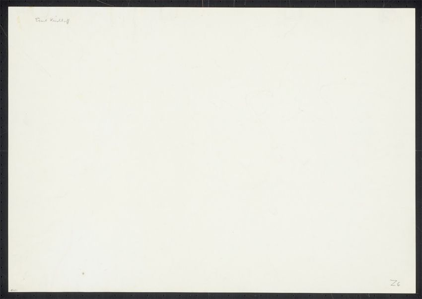 Zustandsbericht: Die Blattkanten ohne Einrisse oder Fehlstellen. Die obere rechte Ecke leicht bestoßen. Das Papier ungleichmäßig schwach gebräunt sowie stellenweise fleckig. Die rechte Bildhälfte mit Wasserflecken hier auch gewellt. Unter UV-Licht sind drei Reparaturen der Papieroberfläche links oberhalb der Signatur zu erkennen (max. 0,7 x 0,9 cm). Rückseitig vereinzelte Stockflecken sowie weitere Schmutzflecken.