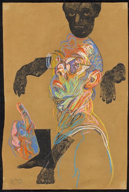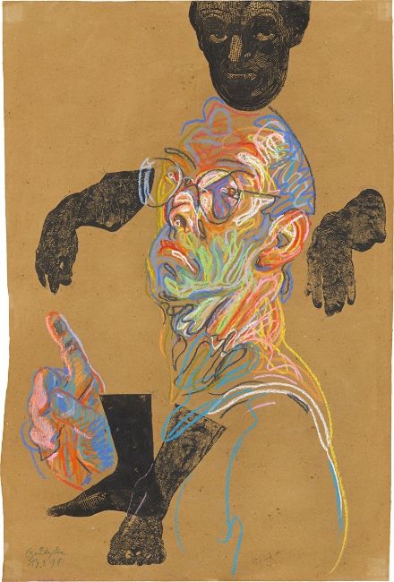 Pastellkreide über Linolschnitt auf Papier. 99,6 × 67,6 cm (39 ¼ × 26 ⅝ in.). Unten links signiert und datiert: Grützke 13.1.90.