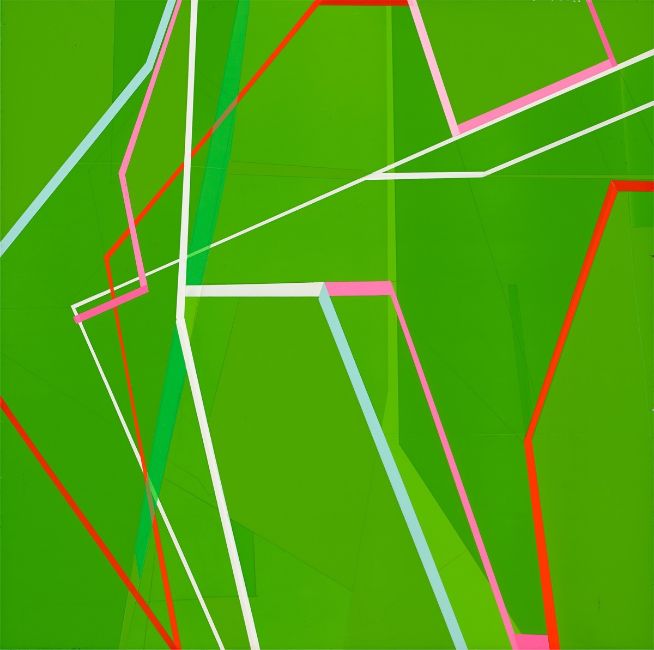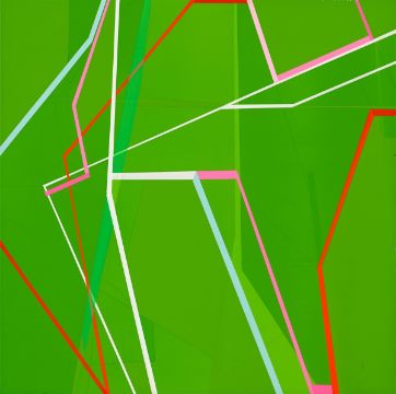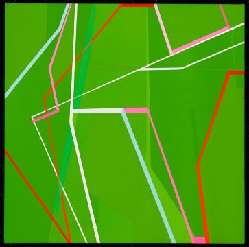 Acryl über Bleistift auf Leinwand. 78,3 × 78,5 cm (30 ⅞ × 30 ⅞ in.). Rückseitig auf der Leinwand mit Filzstift in Schwarz signiert: T. Giehler. Auf dem Überspann mit Filzstift in Schwarz datiert, signiert und betitelt: 9-11-03 T. Giehler FORZA ITALIA.
