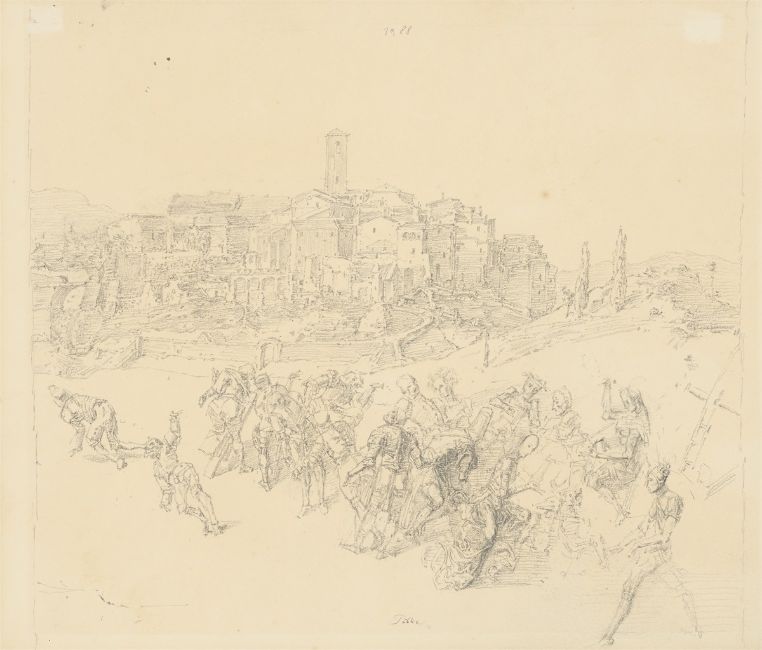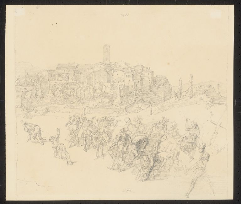 Zustandsbericht: Harmonischer Gesamteindruck. Die Blattkanten ohne Einrisse oder Fehlstellen. Das Papier unregelmäßig gebräunt. Die linken Ecken jeweils mit einem Montierungslöchlein. Die linke und obere Blattkante schwach gewellt. Vorder- und rückseitig leicht fleckig. Unter UV-Licht sind keine Retuschen oder Restaurierungen erkennbar. Rückseitig in den oberen Ecken jeweils mit einem Papierklebestreifen auf den Unterlagekarton montiert.
