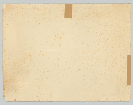 Zustandsbericht: Silbergelatineabzug in sehr gutem Zustand. Mattes Papier. Unter UV-Licht keine Aufheller. Im unteren rechten Eckbereich schwache vertikale Kratzlinie, ca. 4 cm, sichtbar nur im Streiflicht. Mit Aussilberungen im Randbereich. Originalkarton mit starken Gebrauchsspuren: Untere Ecken je mit Fehlstelle. Unten links wellige Stelle durch Feuchtigkeit (ca. 5 x 6 cm). Oben mittig vertikaler Einriss, ca. 7,5 cm lang, an Oberkante mit braunem Papierklebestreifen (ca. 5 cm lang) abgeklebt. Weiterer brauner Papierklebestreifen an linker Kante, ca. 20 cm lang. Weitere schwache Knickspuren, kleine Fehlstellen und bräunliche Verfärbungen in den Kanten sowie vereinzelt winzige Nagellöcher. Entlang der Oberkante leichter Abrieb, ca. 1 cm breit. Kartonrückseite stockfleckig und in den Kanten Spuren ehemaliger Montage mit Nägeln.